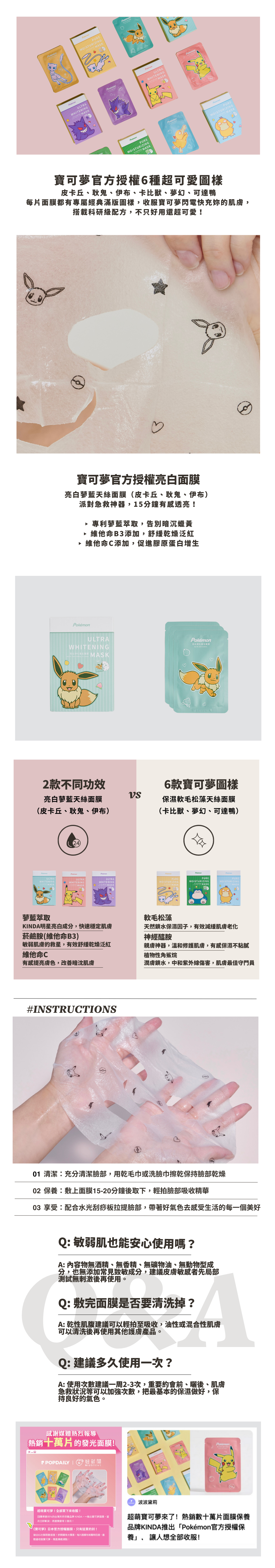 ▸ 採天絲面膜布,可愛角色服貼不移位