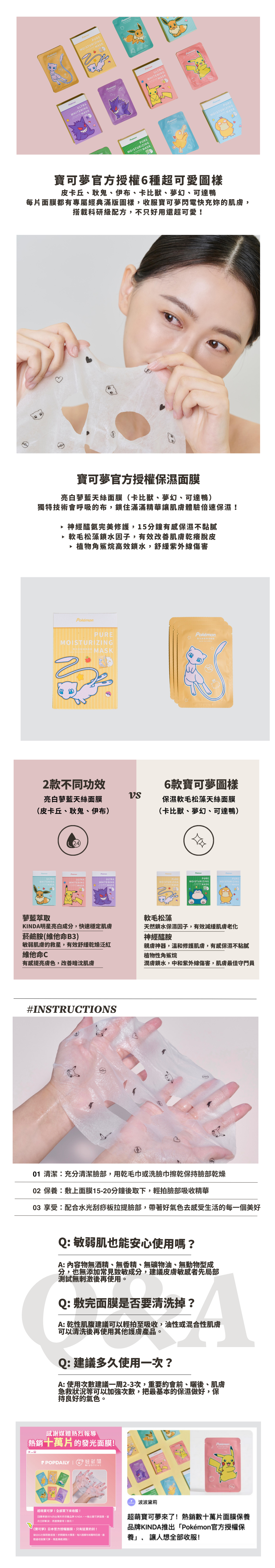 ▸ 採天絲面膜布,可愛角色服貼不移位