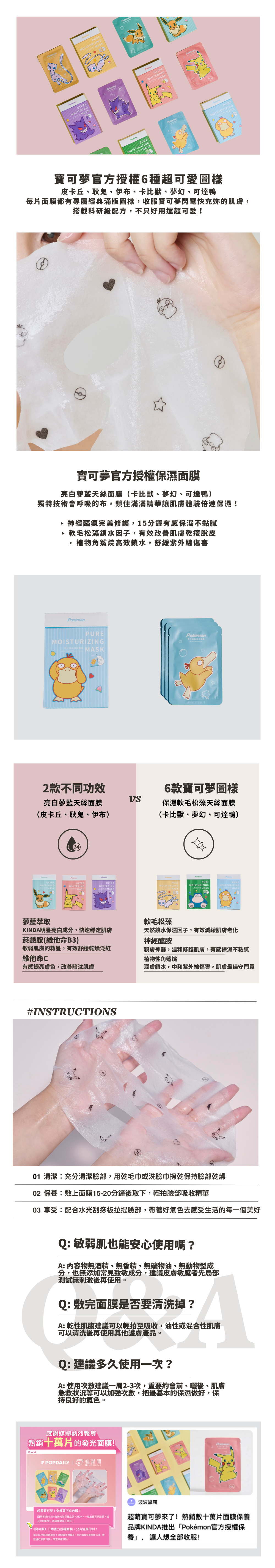 ▸ 採天絲面膜布,可愛角色服貼不移位
