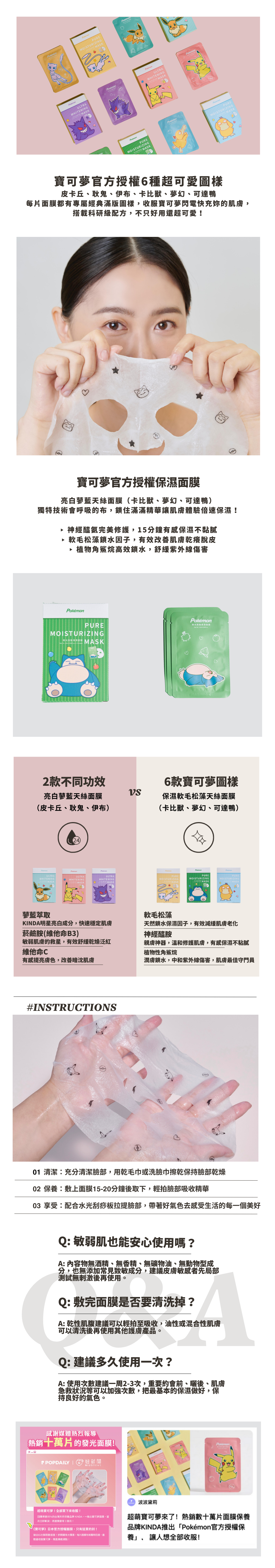 ▸ 採天絲面膜布,可愛角色服貼不移位