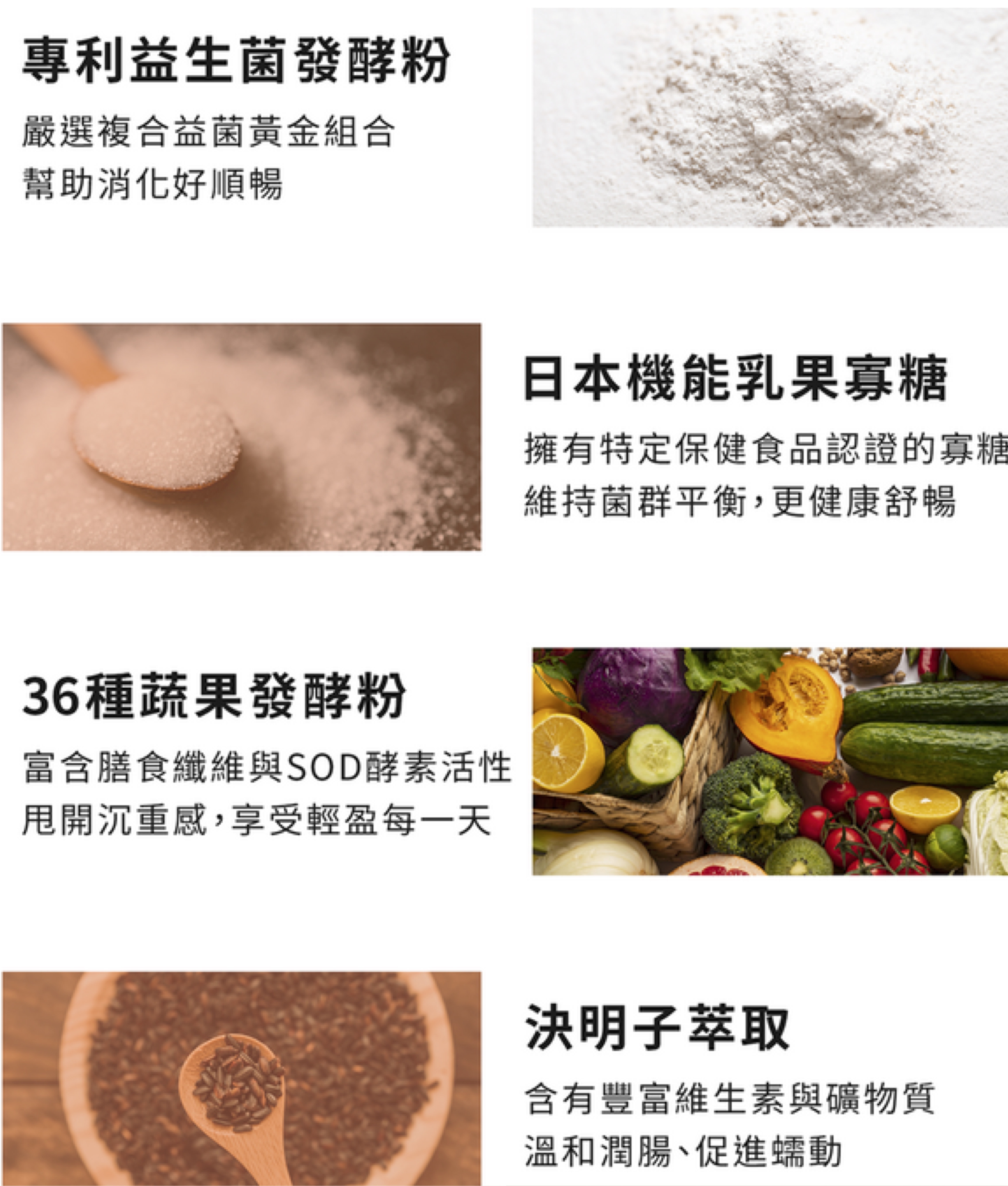 ▸ 萃取46種綜合蔬果,頂級酵素SOD-like