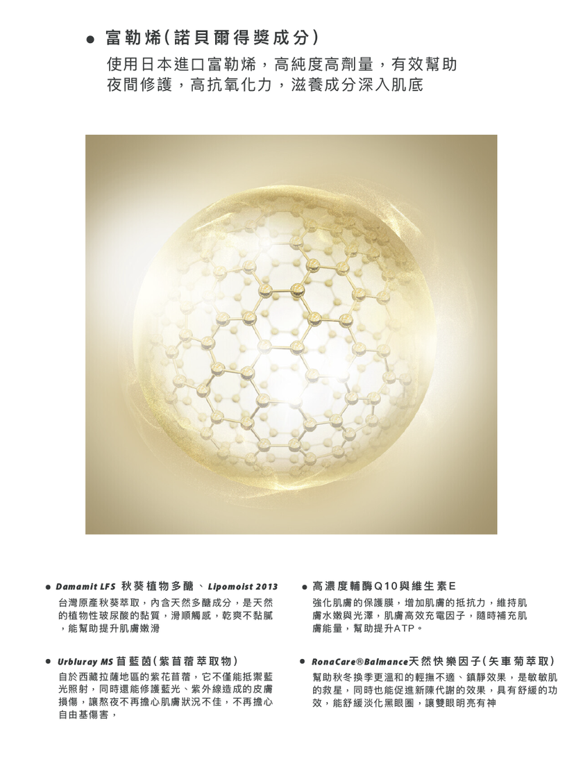 諾貝爾得獎成分富勒烯,抗敏提亮保濕以1抵10