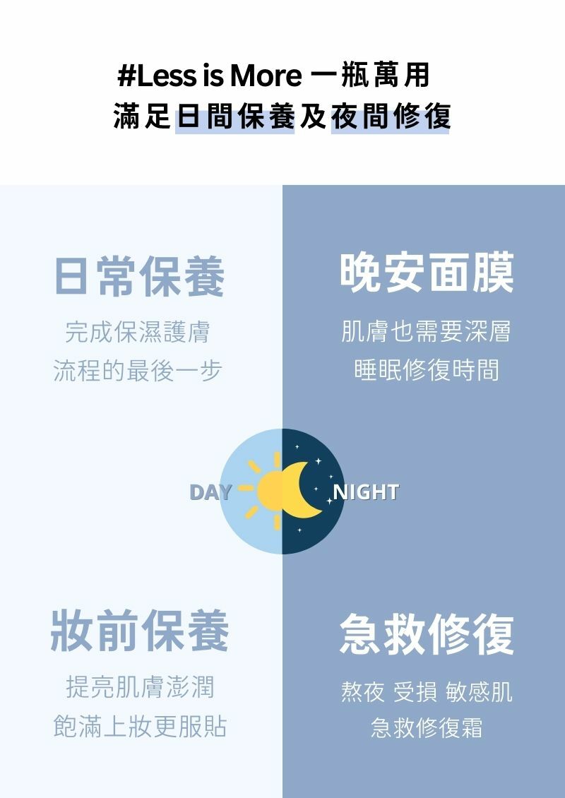 ▸ 添加菸鹼胺、維他命C,多重修復加強保濕提亮