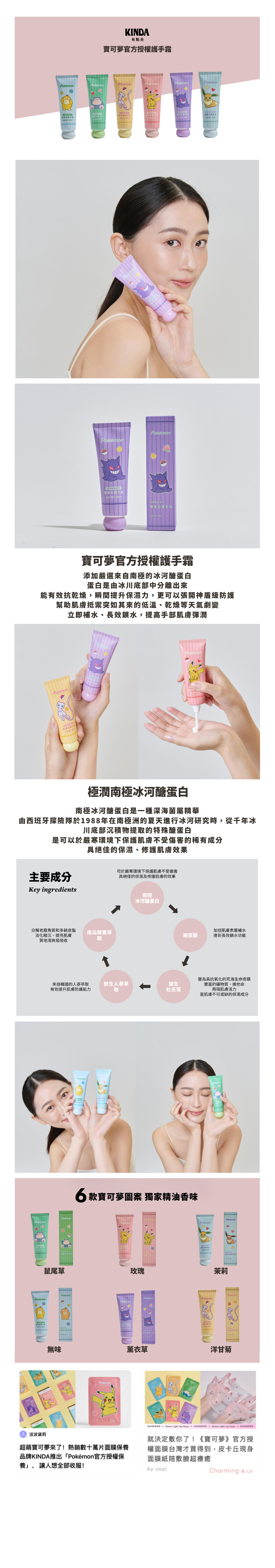 添加南極冰河醣蛋白,有效抗乾燥,立即補水且長效鎖水,搭配玻尿酸、植物果油等有效成分,由內而外潤澤修護,給予雙手全天候的柔嫩呵護。